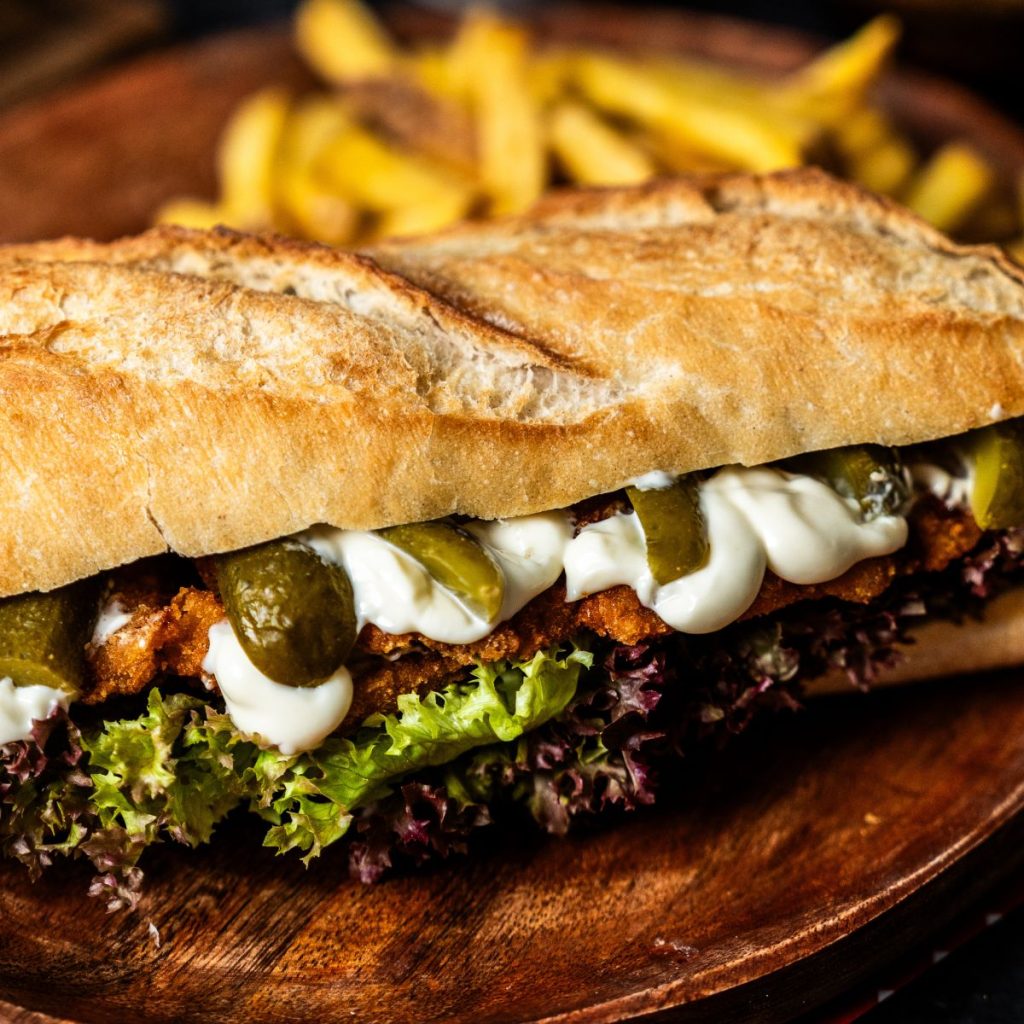 Bagett, citromos majonéz, saláta, csemege uborka – 2750 Ft