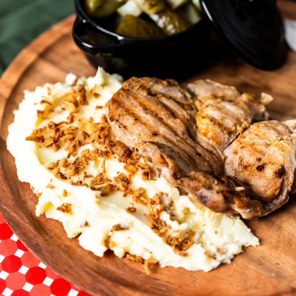 Választható hús: Rántott sertéskaraj / sertéstarja / csirkemell / csirkecomb vagy grillezett csirkemell / csirkecomb